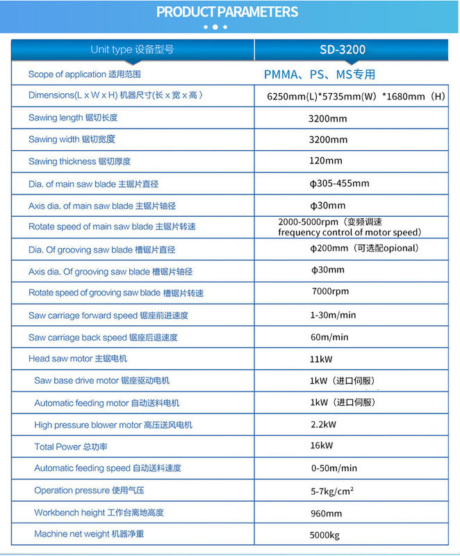 7. করাত সিটের গাইড রেল আমদানি করা ব্র্যান্ড গ্রহণ করে, করাত সোজা< 0.06 মিমি, উচ্চ নির্ভুলতা এবং ভারী লোড সহ, প্যানাসনিক সার্ভো কন্ট্রোল বিশেষভাবে PMMA, MS, PS, PLEXIGLASS, ACRYLIC, PLASTIC-এর জন্য ব্যবহৃত হয়।